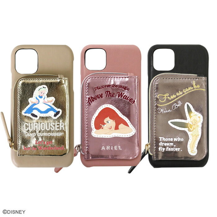 送料無料 iPhone11 ディズニー ポケット付き 刺繍 ケース カバー ポケット 背面 カード収納 コインケース PUレザー ソフト ソフトケース ハード キャラクター グッズ アリス アリエル ティンカーベル 6.1inch iphone 11 アイフォン スマホカバー スマホケース s-su-7d521