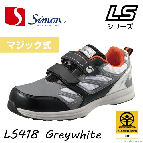 シモン安全靴 LS418 マジック式 グレー/ホワイト | 安全 スニーカー シューズ 靴 現場 作業靴 作業用 作業 黒 先芯 つま先保護 マジックテープ マジック jis メンズ 溶接 ワークブーツ ワークシューズ セーフティ セーフティー セーフティシューズ