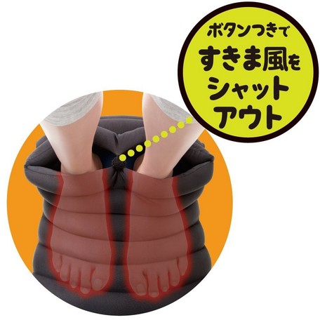 ・電源を使わないからエコ ・足首まですっぽりロングタイプ ・アルミフィルムが冷気をガード ・ボタンつきですきま風をシャットアウト マイクロビーズ、フリース、アルミフィルムの3層構造で温かい空気の層をつくります。