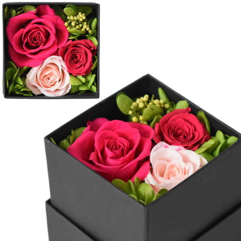 バラのプリザーブドフラワーボックス(ピンク)Rose Preserved Flower Box -Pink- 2色のピンクのバラをコーディネートした、かわいらしい手のひらサイズのボックスフラワー。