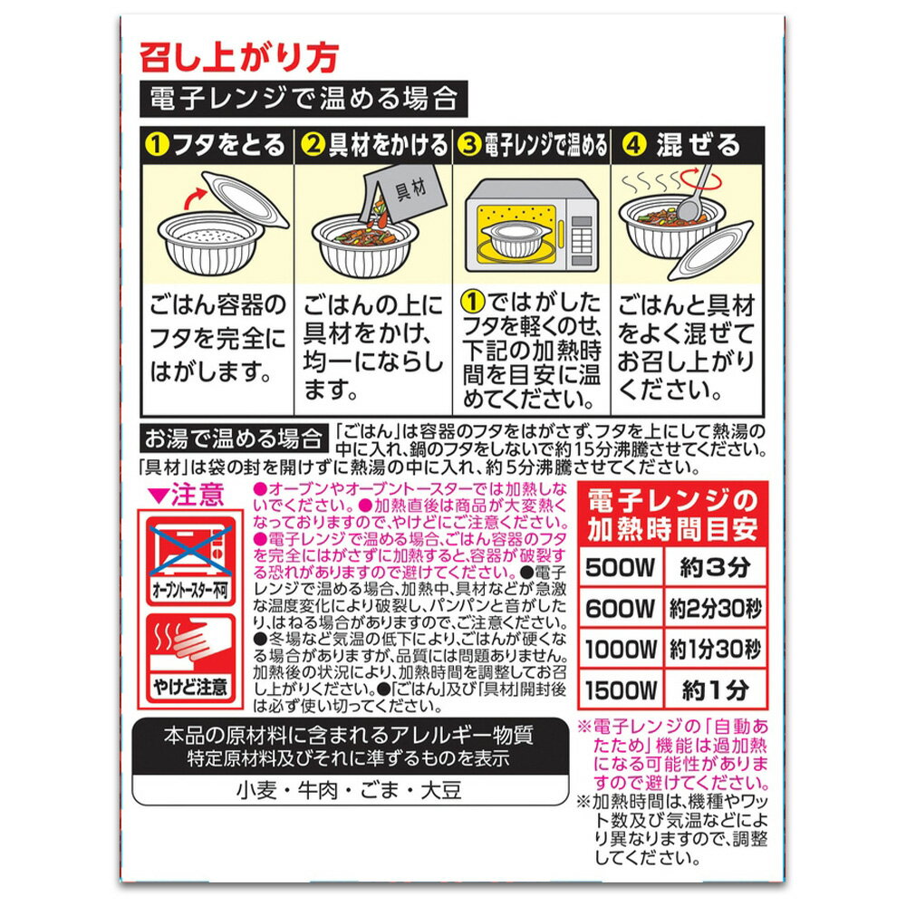 ●原材料[ごはん]うるち米(国産)/酸味料[具材]野菜(にんじん、筍、れんこん、大豆もやし、山くらげ)、コチュジャン、砂糖、醤油、ごま油、牛肉、きくらげ、にんにくペースト、ごま、香味油、魚介エキス、食塩、香辛料/調味料(アミノ酸)、増粘剤(キサンタン)、カロチノイド色素、(一部に小麦・牛肉・ごま・大豆を含む)●保存方法直射日光を避け、常温で保存してください。