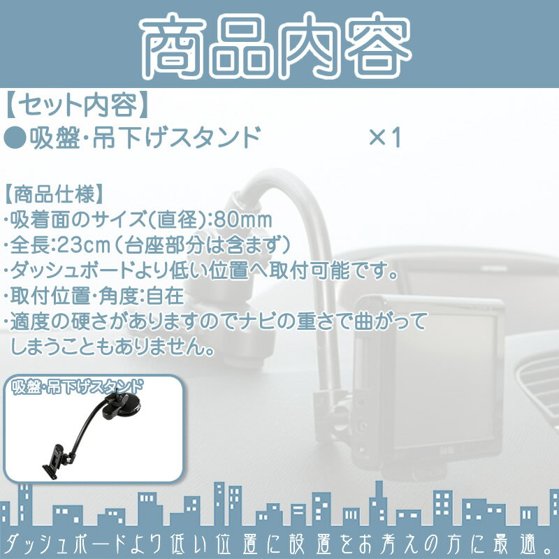 ■吊り下げ取付タイプ アームは、フレキシブルタイプとなっており、自由自在に曲がりますので、気に入った位置へピンポイントにナビを設置出来ます。