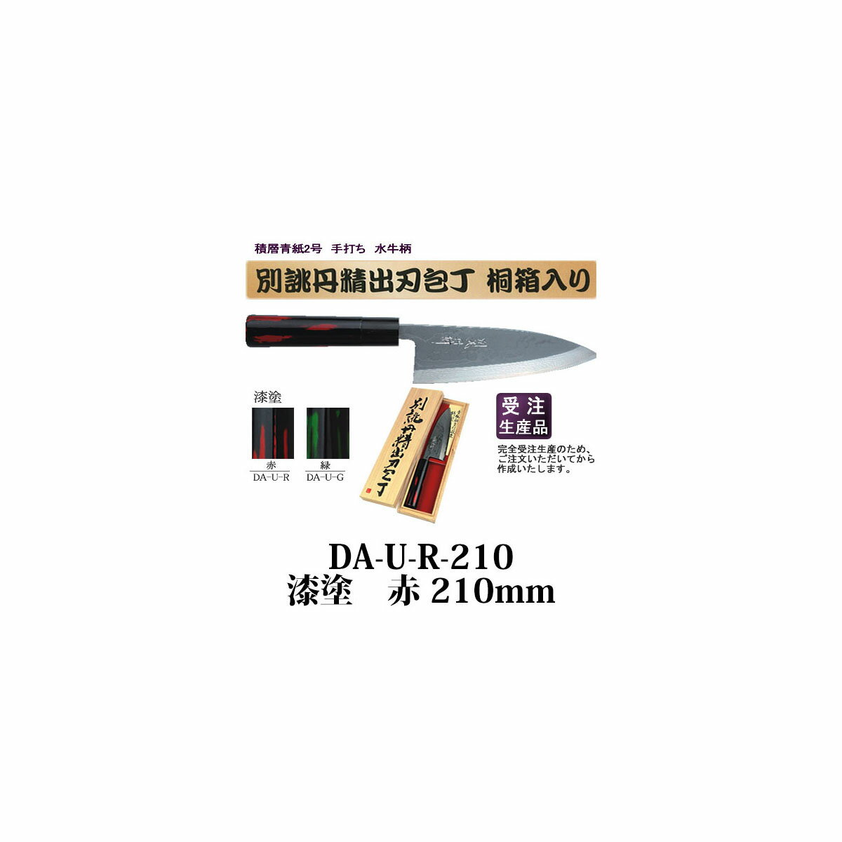 四ツ目 出刃包丁 積層青紙2号手打ち 水牛柄210mm 漆塗 赤 DA-U-R-210 藤田丸鋸工業