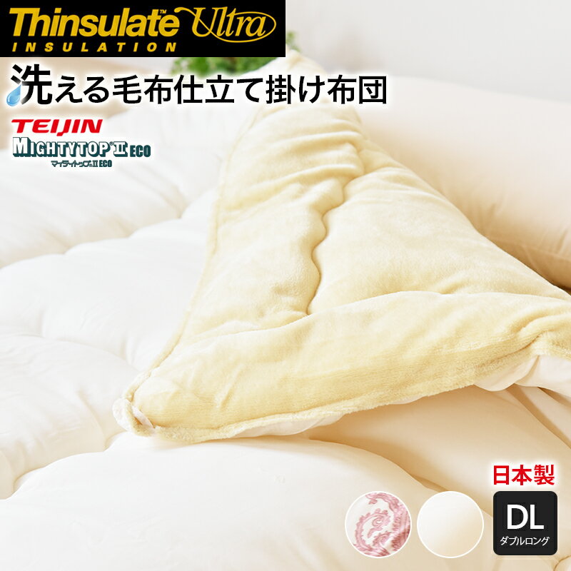 洗える ダブル 掛け布団 シンサレート シンサレートウルトラ150 掛け掛布団 毛布 洗濯 国産 防臭 防ダニ 布団 ポリエステル100% デリケート ひなたの東レFT SEK 100日 ダブルロングサイズ