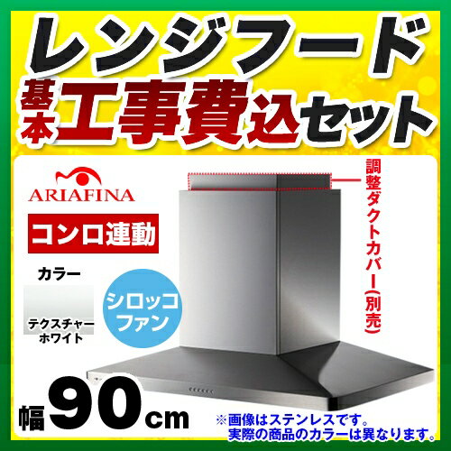 【楽天リフォーム認定商品】【工事費込セット(商品+基本工事)】[CMAYAL-955-TW] アリアフィーナ レンジフード Center Maya センターマヤ スリム型 90cm幅 高級センターフード シロッコファン テクスチャーホワイト 調整ダクトカバー別売
