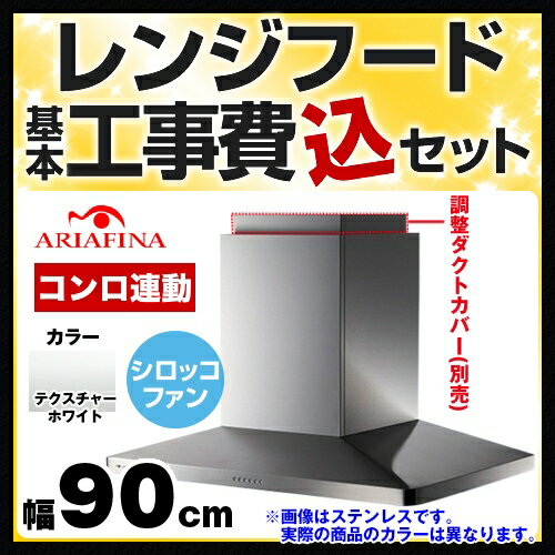 【楽天リフォーム認定商品】【工事費込セット(商品+基本工事)】[CMAYAL-955-TW] アリアフィーナ レンジフード Center Maya センターマヤ スリム型 90cm幅 高級センターフード シロッコファン テクスチャーホワイト 調整ダクトカバー別売