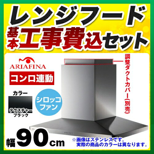 【楽天リフォーム認定商品】【工事費込セット(商品+基本工事)】[CMAYAL-955-TBK] アリアフィーナ レンジフード Center Maya センターマヤ スリム型 90cm幅 高級センターフード シロッコファン テクスチャーブラック 調整ダクトカバー別売