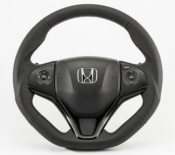 ケンスタイル 【 ステアリング 純正交換 】≪ ブラックレザー ステッチ要選択 ≫ ホンダ グレイスハイブリッド 型式 GM4/GM5 年式 H26/12- ≪ ガングリップ Dシェイプ グリップ部パンチング仕様 純正パドル対応可 ≫