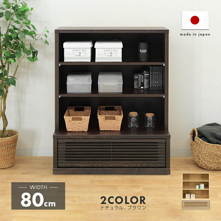 ラック シェルフ 完成品 幅80cm ロータイプ ナチュラル ブラウン 木製 和風 リビング収納家具 収納ラック 収納棚 リビングラック 飾り棚 飾棚 ブックシェルフ 本棚 書棚 ディスプレイラック キャビネット 陳列棚 リビングボード