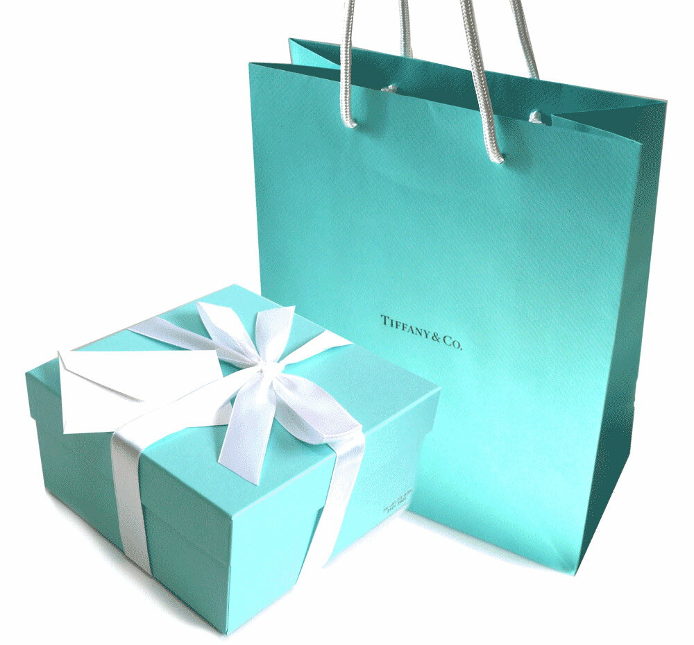 専用ボックスにリボンを掛けて、 メッセージカード、ティファニーの紙袋付きでお届けします。