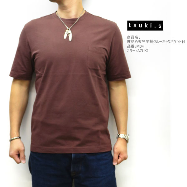 2020SS新色☆【メール便送料無料☆】 tsuki.s ツキドットエス ポケットTシャツ ツキドットエス 【 MD4 】 度詰め天竺半袖クルーネックカットソー 【 あずき 】 毎シーズン定番アイテム Tシャツ ツキエス 丸首 ポケット付き 小豆 azuki