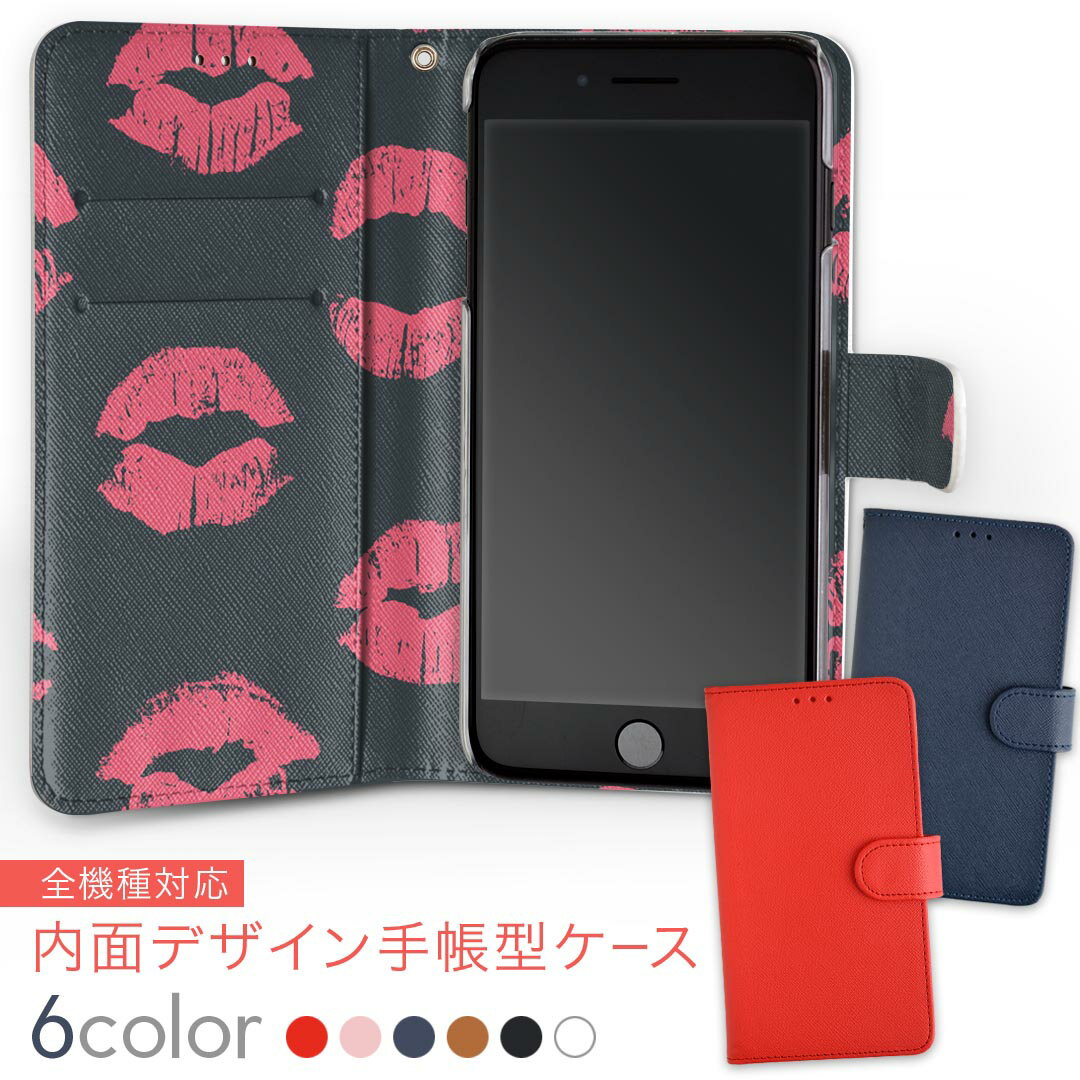 手帳型 docomo softbank au あり 内面プリント 裏側 内側 内面 スマホ カバー レザー ケース 手帳タイプ フリップ ダイアリー 二つ折り 革 insidenb 011370 くちびる マーク ピンク