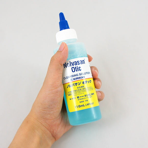 洗浄方法 普段のお手入れには、週に1〜2回、ガーゼや脱脂綿に液を十分に染み込ませて、やさしく耳の中を拭いてあげてください。