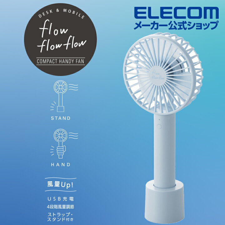 エレコムダイレクトショップUSB扇風機“flowflowflow”シリーズの大風量充電式2WAYハンディファンです。