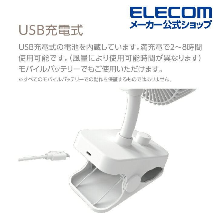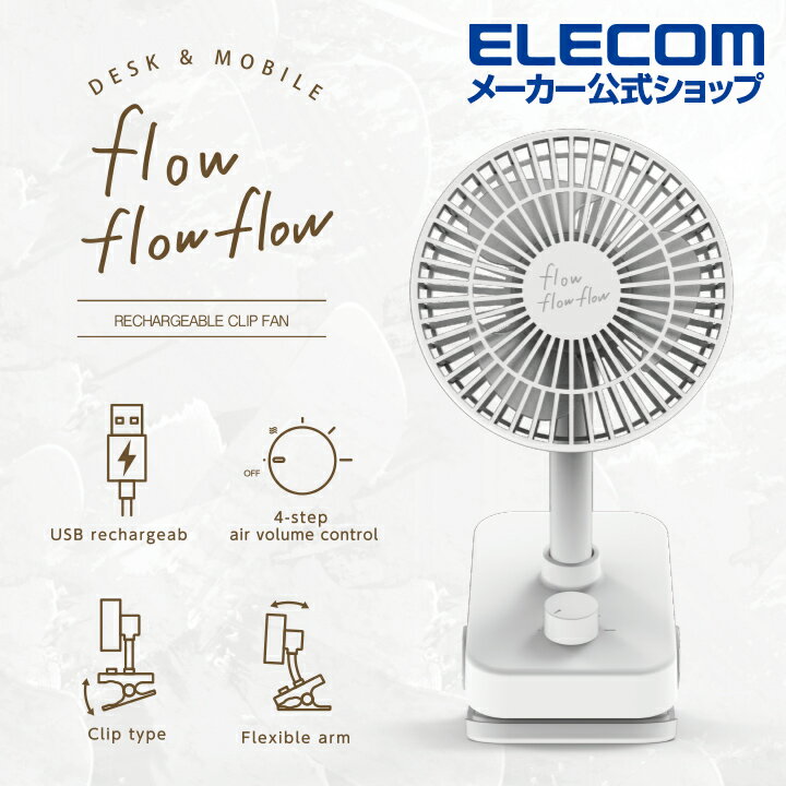 エレコムダイレクトショップUSB扇風機“flowflowflow”シリーズの充電式クリップファンです。
