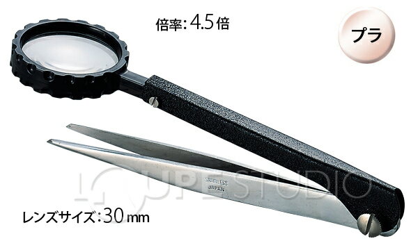 虫眼鏡 ピンセットルーペ 1960 4.5倍 30mm 便利な拡大鏡付き ピンセット 池田レンズ ピンセット付き拡大スペック品名ピンセットルーペ品番1960レンズサイズ30mm倍率4.5倍重さ38 g本体サイズ135×36×16 mm箱サイズ縦156×横58×高さ18 (mm)材質abs樹脂・ステンレス・他レンズプラスチックレンズ(アクリル製) 池田レンズ工業 ※仕様及び外観は改善のため、予告なく変更することがあります。