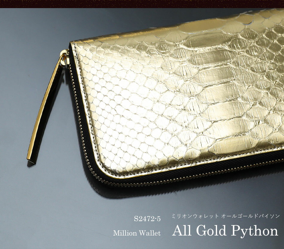 【池田工芸】日本最大のエキゾチックレザー専門店が贈る100万円専用長財布 All Gold Python Million Wallet(オールゴールドパイソン ミリオンウォレット)【1月22日頃出荷】