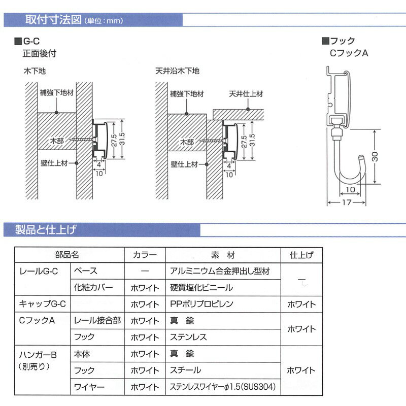 【セット内容】 レール2m、キャップ×2、CフックA×2 *ビスは附属しておりませんので別途ご用意ください。
