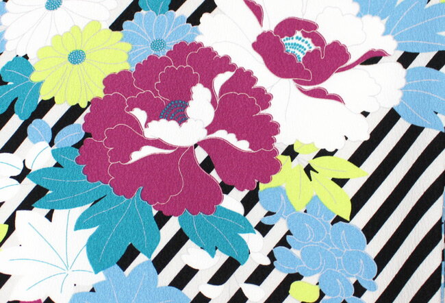 ブランド 撫松庵 デザイン 手綱(ストライプ)に花 素材・寸法 ポリエステル 100% 身丈 約163cm 裄 約68cm 袖丈 49cm 生地 日本製・中国縫製 注意事項 ※インターネット環境によって、 多少色目が異なって見える場合がございます。