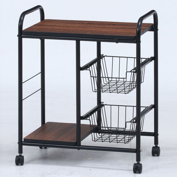 \300円引きクーポン進呈/木製 ストッカーワゴン 4段送料無料 狭いスペースを有効活用!たっぷり4段の収納力♪完成品です MUD-6706LBR 隙間 木製 野菜 野菜ストッカー タイル キャスター付 サイドラック ストッカー キッチン スリム 隙間収納