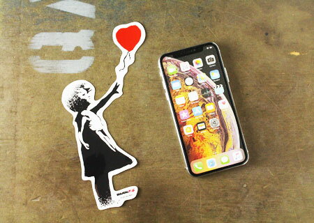 そんな謎多きバンクシーデザインのステッカーがコチラ! 有名なデザイン、ハートの風船を飛ばす少女(Balloon Girl)。