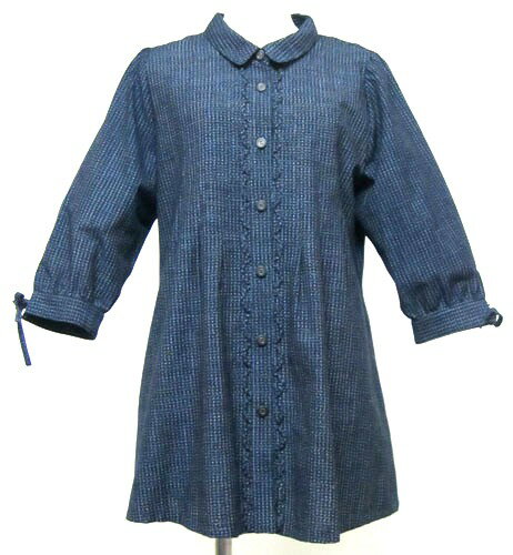 日本製 国産 福岡県伝統工芸品ブラウス 和柄 かすり服レディース 和柄服 久留米絣チュニック 前開きブラウス文人柄