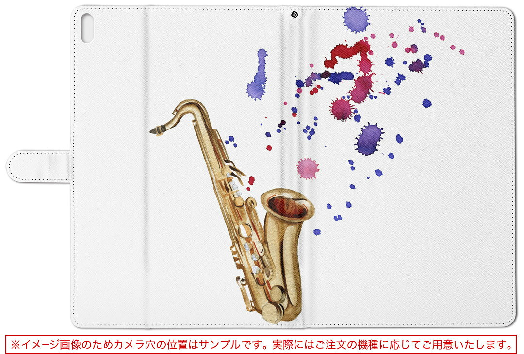 d-01h Huawei ファーウェイ dtab ディータブ d01h Lサイズ 手帳型 タブレットケース カバー レザー フリップ ダイアリー 二つ折り 革 014812 サックス 音楽 楽器