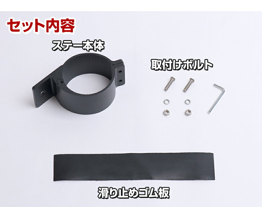 ■作業灯 集魚灯 サーチライトの取付けに ■船や車の本体に穴を開ける事なくライトの取付けが可能になります ■大口径76mmパイプ対応 ■取付けが甘い場合は市販のゴム板で厚み調整して下さい ■ライト取付け穴は14.1mmですので、ほとんどのライトが取付け可能 品番:KNGT-76mm 寸法:幅52mm × 側面140mm 重量:約290g 厚み:3.2mm 穴径:14.1mm 取付け径:〜76mm ボディ材質:アルミ 付属品:6mmボルト×2本 滑り止め用ゴム板