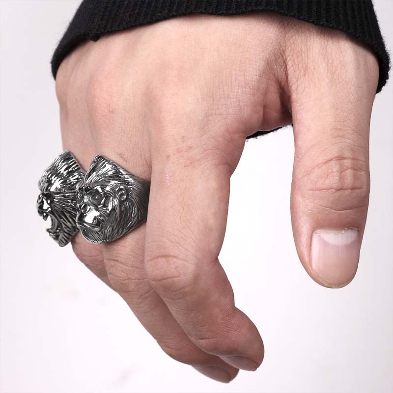 冷静なゴリラをモチーフにしたステンレス素材のアニマルリング。