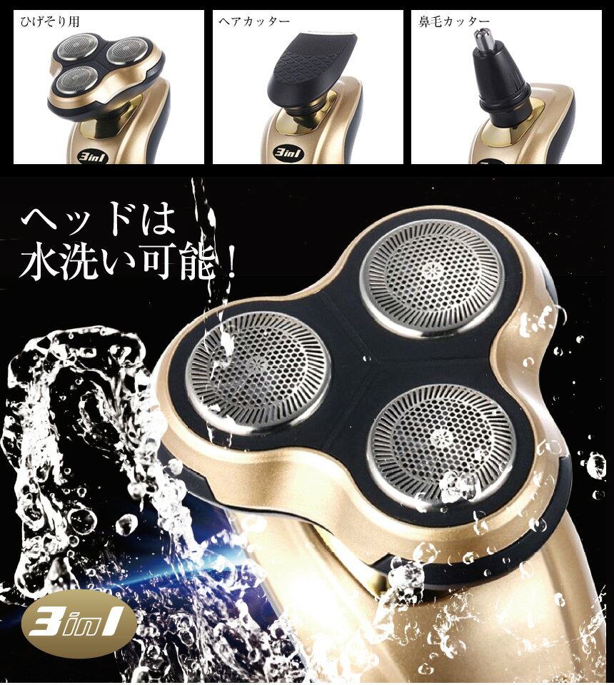 3ロータリー式電動シェーバー [RRSHAV-3FUNC]2本組【新聞掲載】シェーバー メンズ 男性用 ひげそり 髭剃り 水洗い ヒゲソリ 3ロータリー式 電動シェーバー 鼻毛カッター アタッチメント ヘアカッター 刃 バリカン 暮らしの幸便